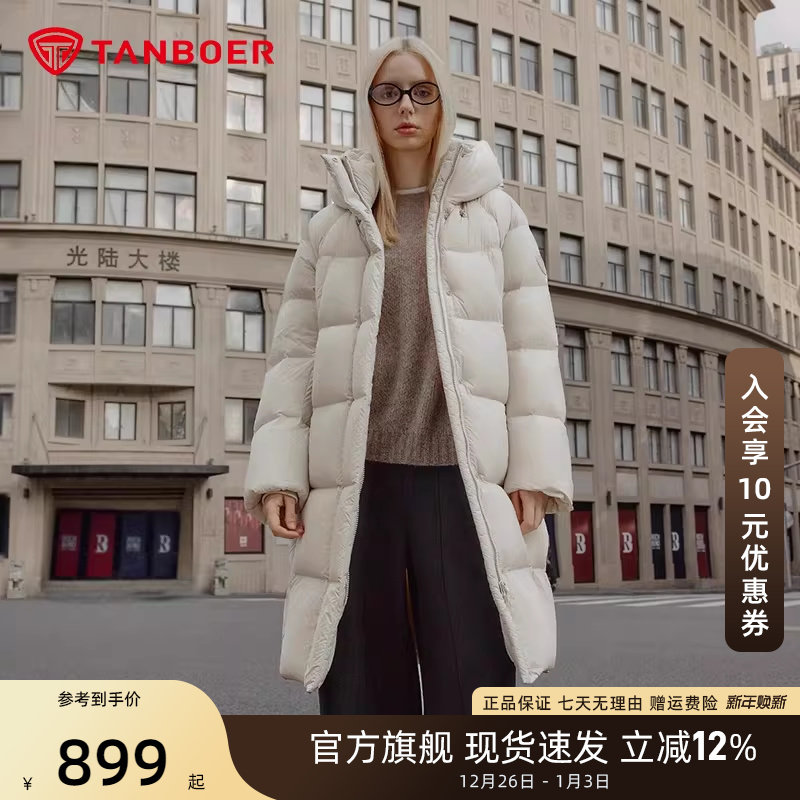 【高充绒】坦博尔冬季新款女显瘦长款过膝羽绒服连帽加厚保暖外套