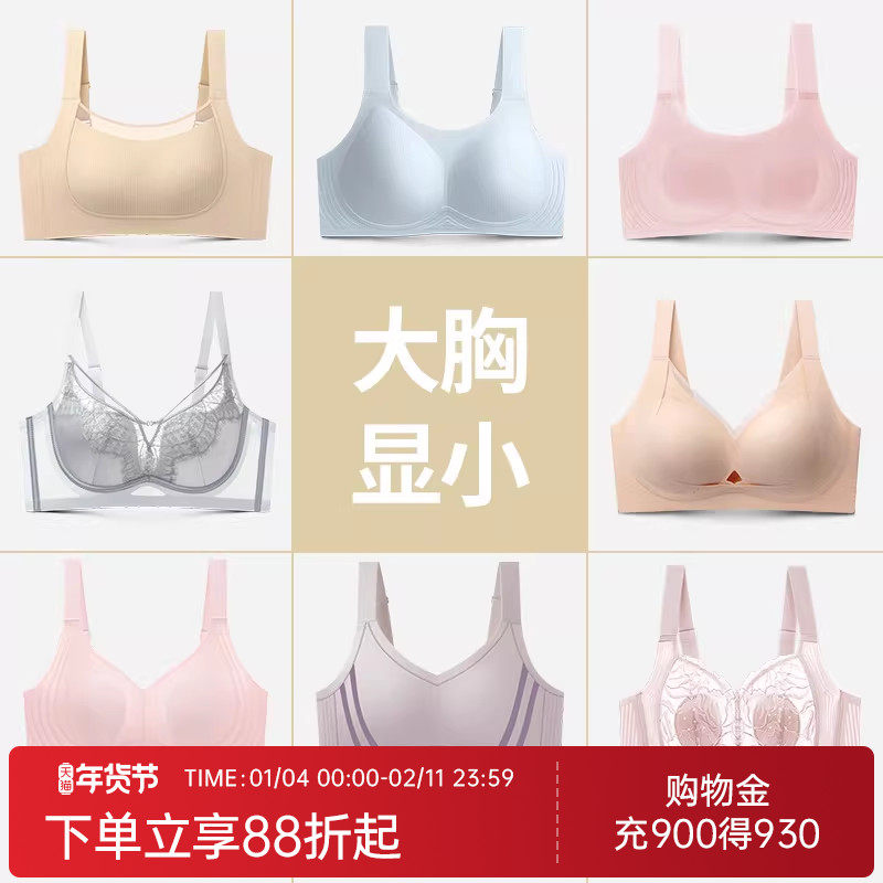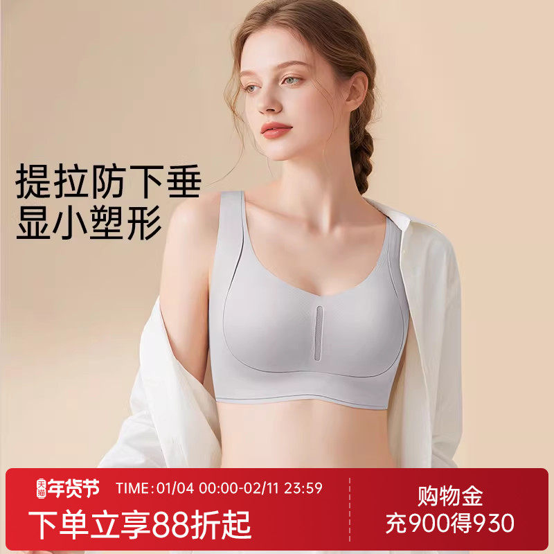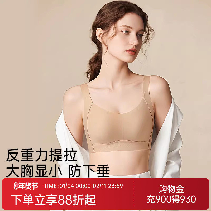 润微无痕内衣女大胸显小提拉收副乳无钢圈防下垂包容显瘦薄款文胸