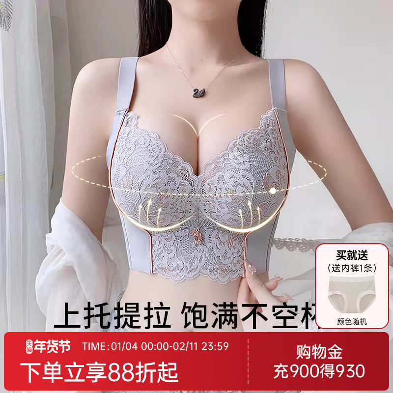 润微内衣女小胸聚拢显大调整型聚拢收副乳防下垂蕾丝无钢圈文胸罩