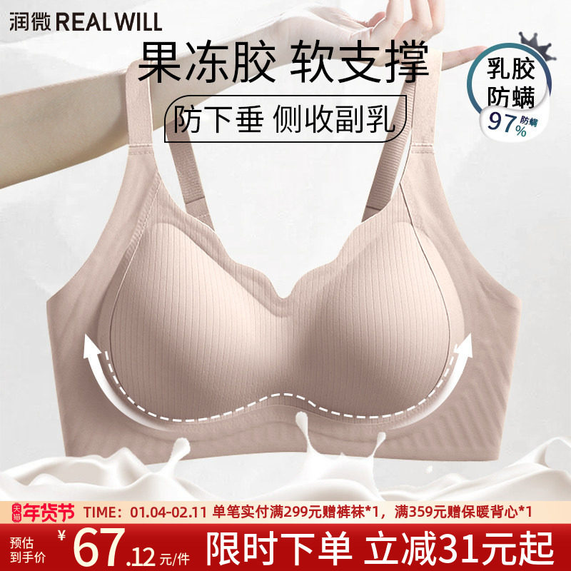 润微轻薄舒适透气无痕防凸点果冻条软支撑内衣女聚拢无钢圈文胸罩