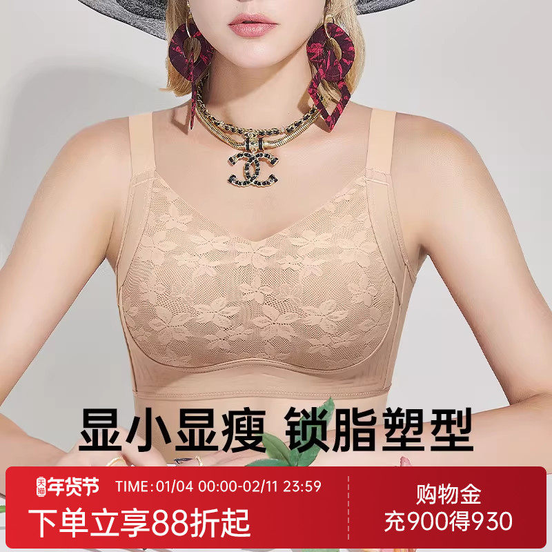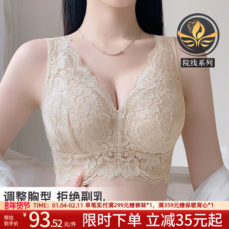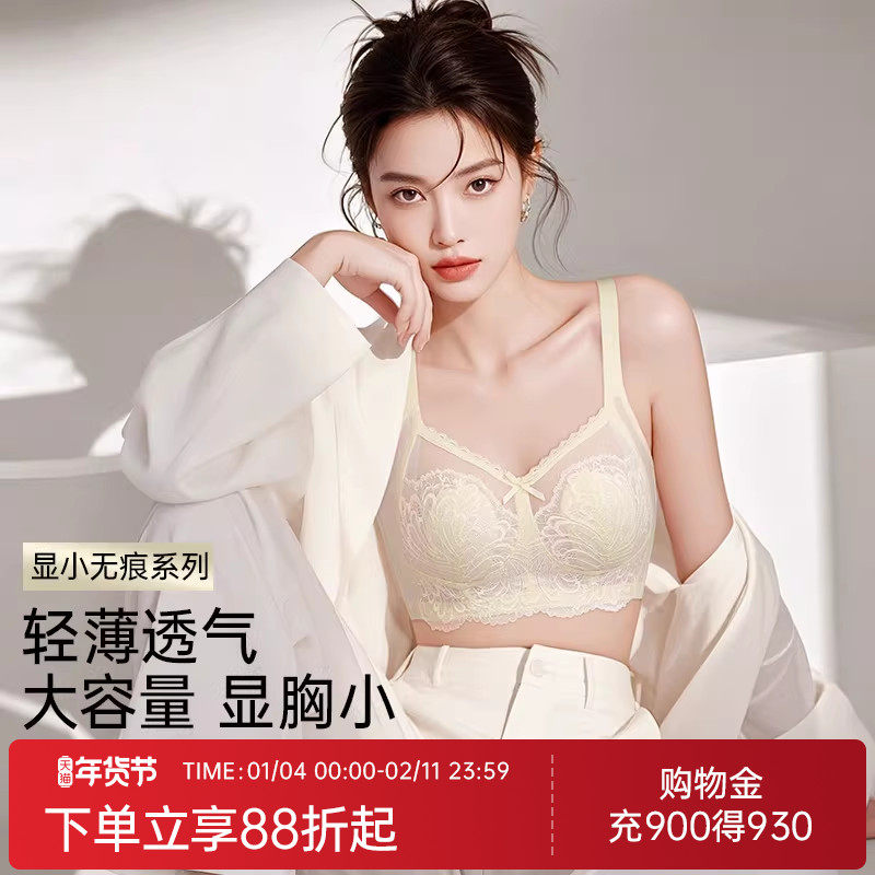 润微院线调整型大胸显小蕾丝薄款内衣女收副乳防下垂无钢圈文胸罩