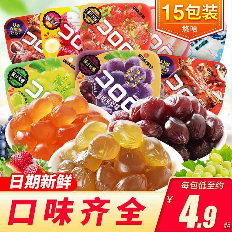 uha悠哈果汁软糖味觉糖15包酷露露剥皮水果qq糖果喜糖休闲小零食