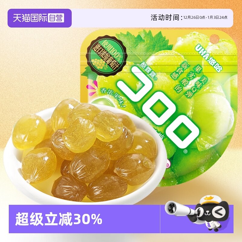 日本直邮UHA悠哈果汁软糖爆浆食感葡萄桃子草莓青提休闲糖果零食