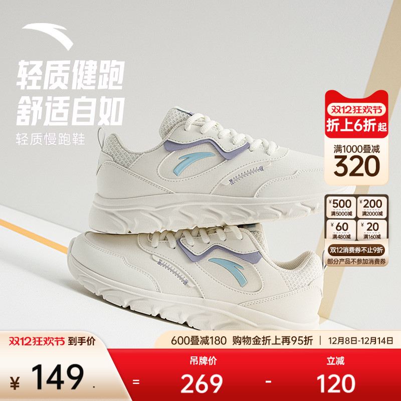 安踏叶子6跑步鞋女2025冬季新品轻质厚底轻便体侧休闲运动鞋女鞋