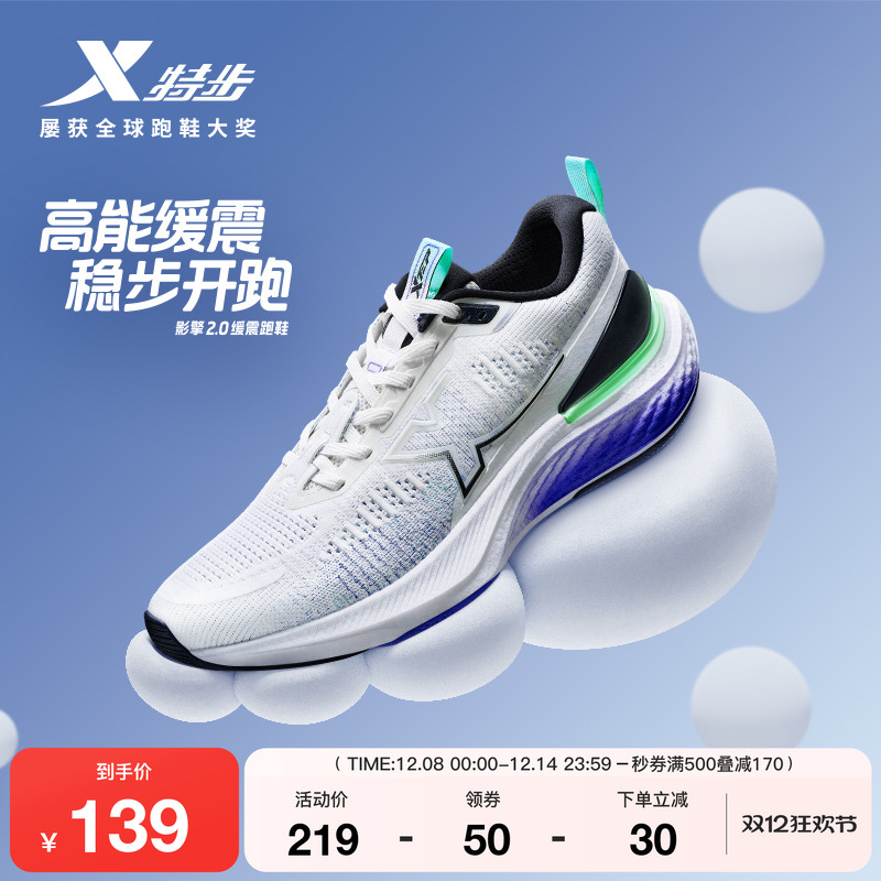 特步元气2.0跑步鞋男轻便革网舒适复古休闲运动鞋女975219320014