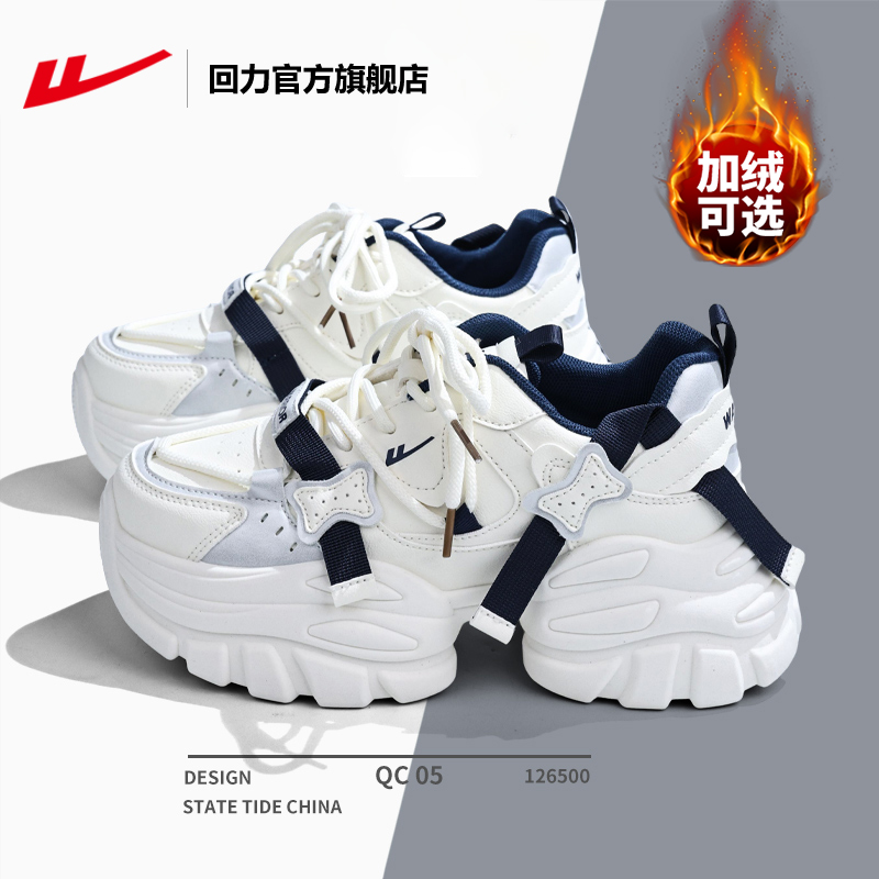 回力官方旗舰店加绒厚底老爹鞋女鞋2025冬季新款皮面休闲运动鞋女