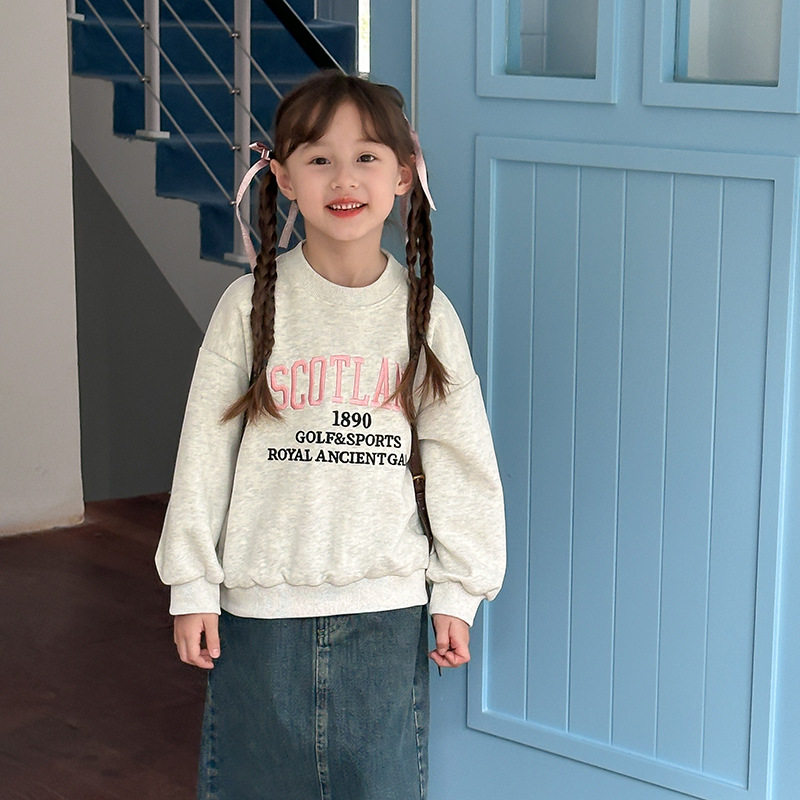 女童宽松休闲韩版刺绣字母卫衣2025春秋儿童圆领套头衫宝宝上衣潮