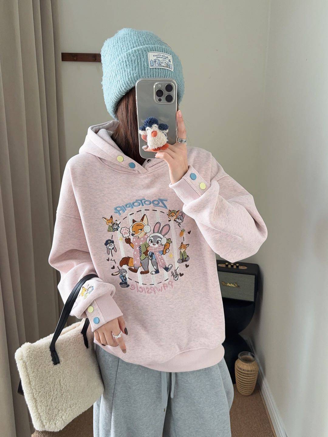 疯狂动物城尼克刺绣加绒加厚连帽卫衣女套头长袖宽松韩版卫衣女潮