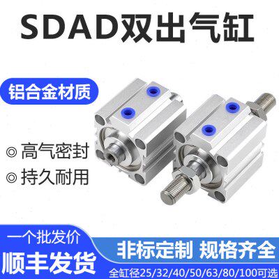 薄型气缸双出双头双轴双向SDAD20/25/32/40/50/63/80/100X10X15