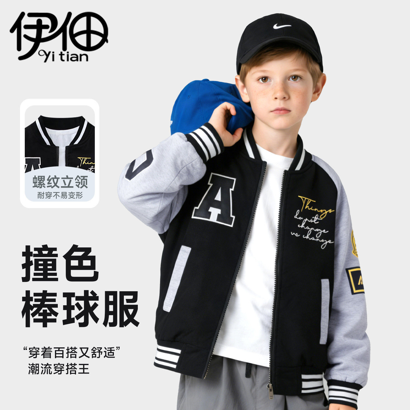 儿童棒球服外套 男童女童立领夹克衫 170码中大童开衫春秋款童装