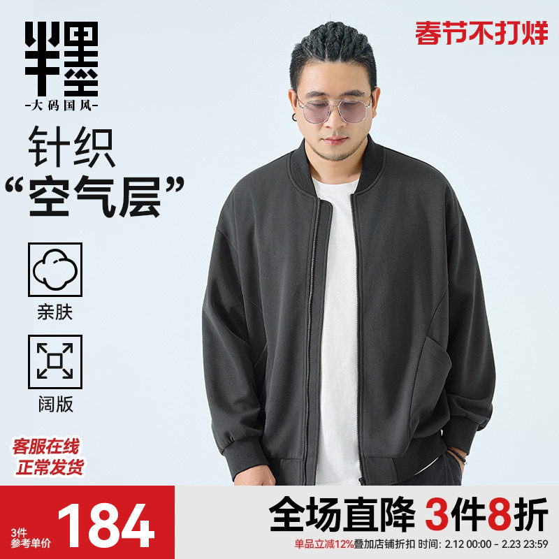 【空气层】半墨大码男装棒球领夹克春季休闲宽松针织拉链开衫外套