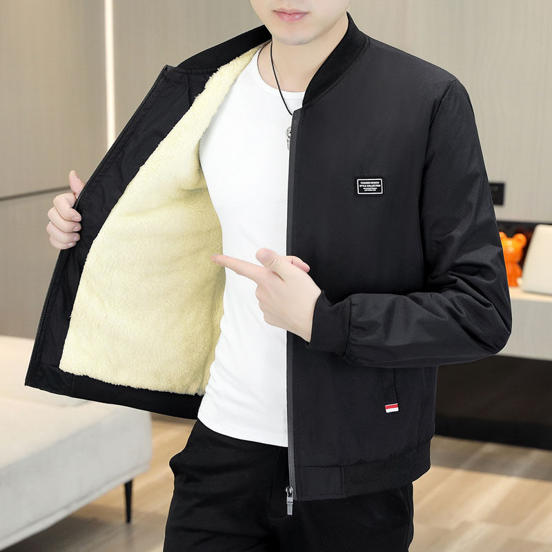 秋冬季加绒加厚男士外套中青年休闲百搭夹克衫男装立领棒球服上衣