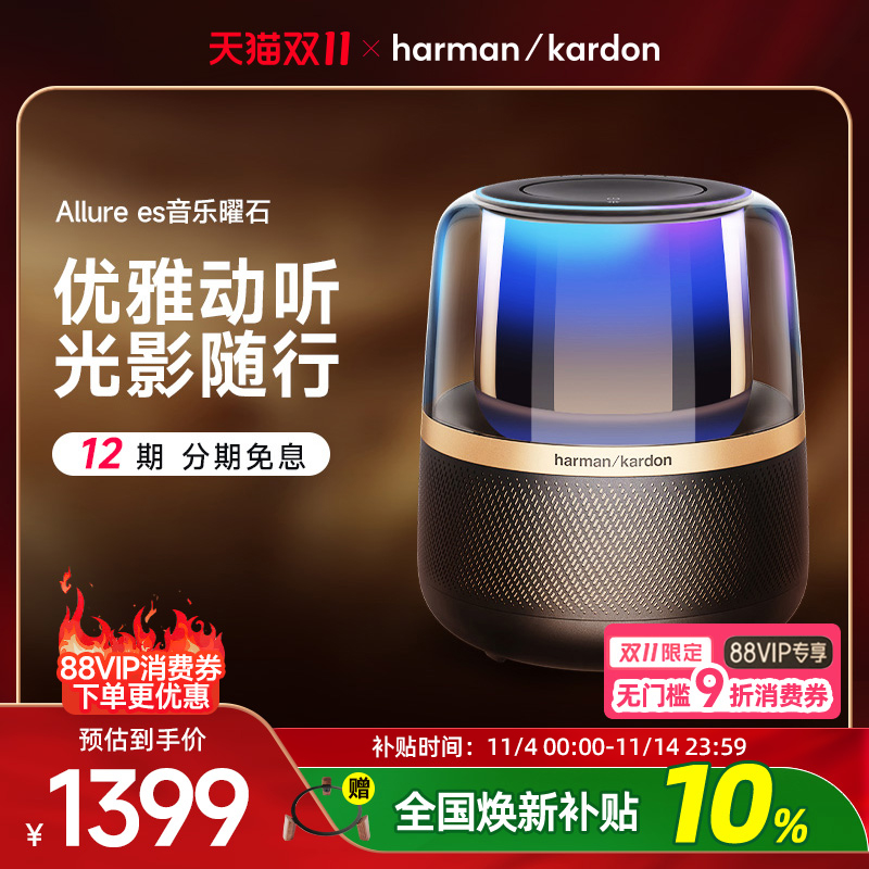 哈曼卡顿AllureEs音乐曜石家用桌面无线蓝牙音箱氛围灯光礼品音响