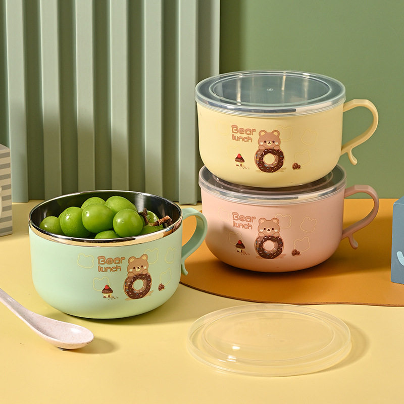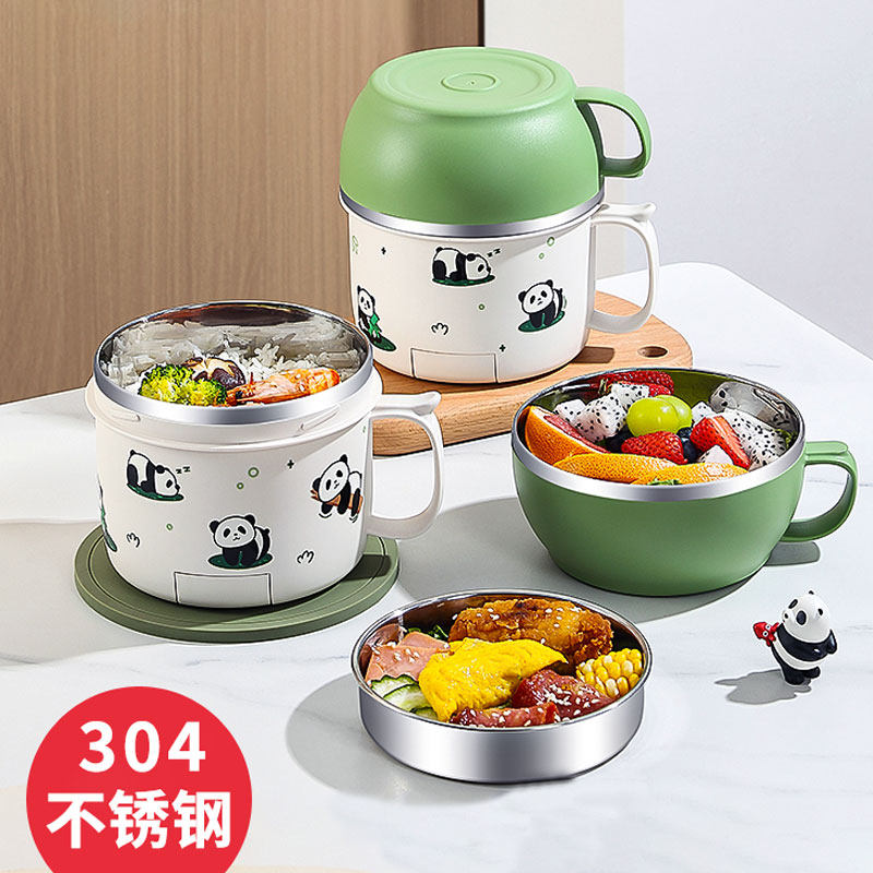 304不锈钢泡面碗带盖大号 加厚学生保温饭盒便当盒双层隔热带手柄