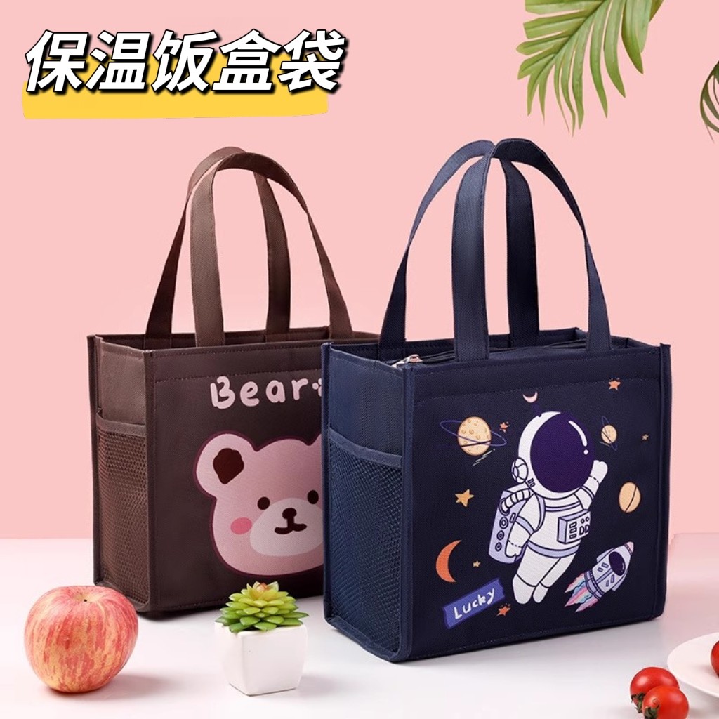 学生保温饭盒袋子可爱手提午餐袋加厚铝膜可爱便当包大容量带饭包