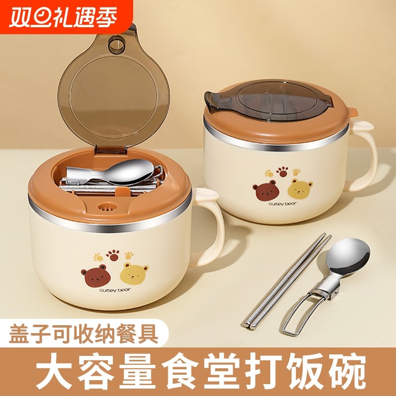 上班族饭碗食堂打饭专用泡面碗带盖儿童小学生保温饭盒不锈钢双层