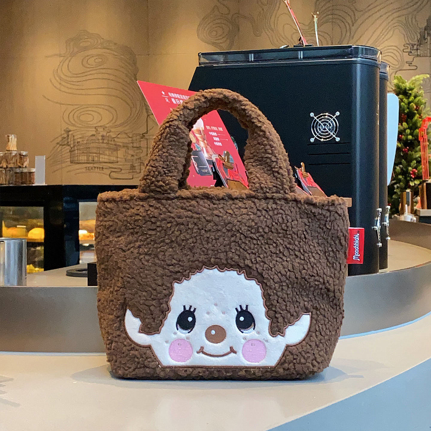 日系卡通蒙奇奇可爱毛绒手提便当包上班带饭收纳包学生保温饭盒袋