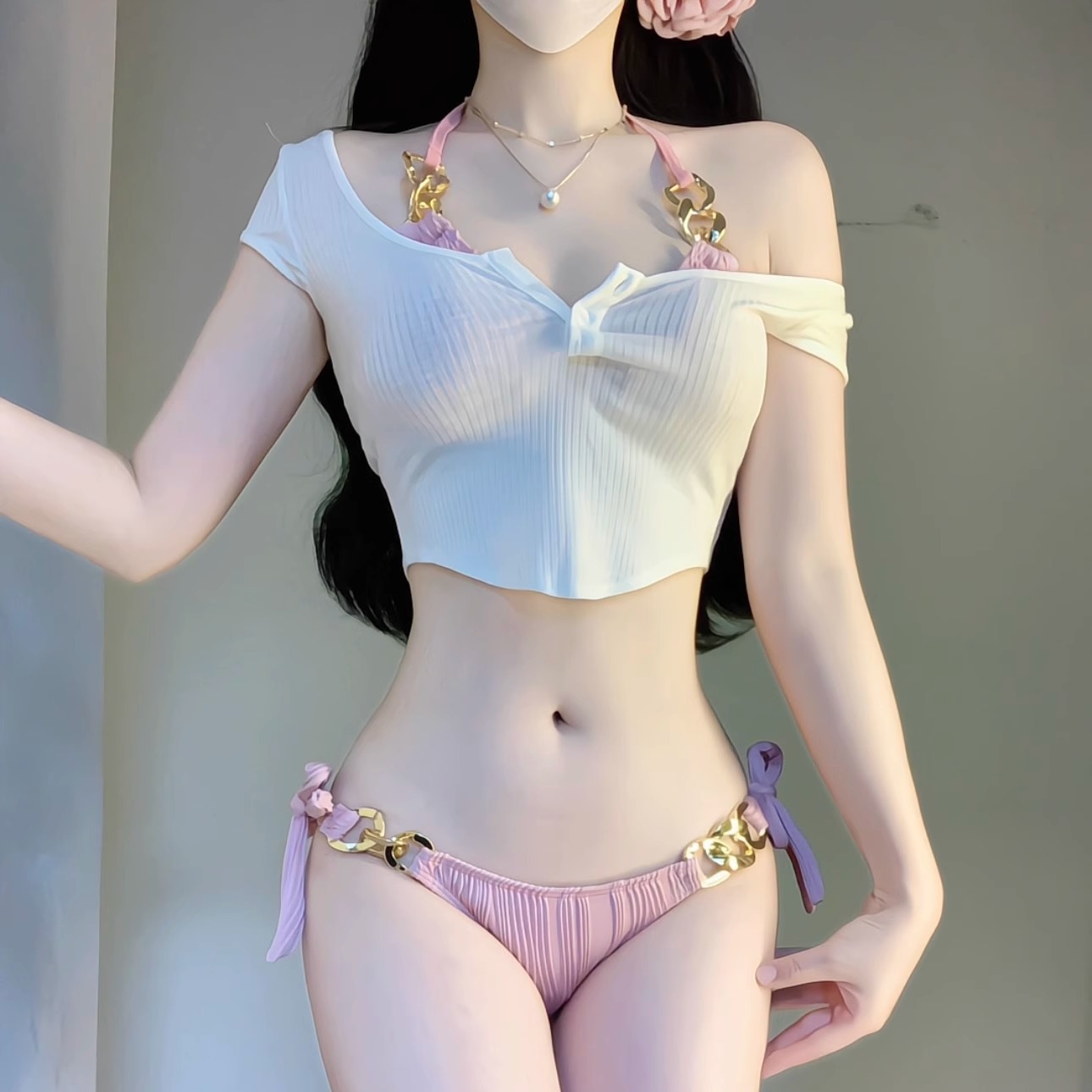 2025新款分体泳衣女比基尼三件套性感辣妹纯欲风小胸聚拢温泉度假