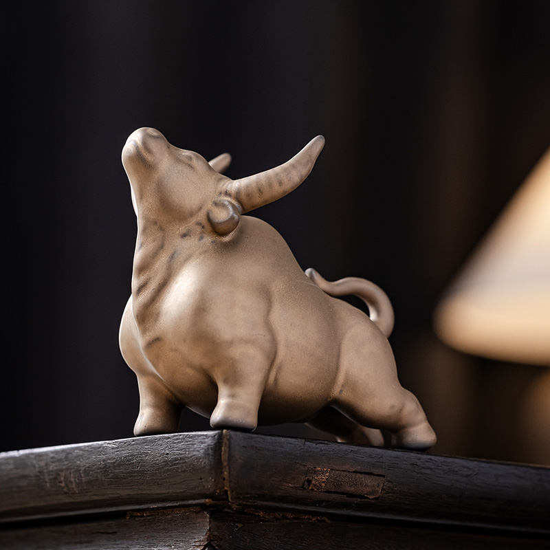创意哥窑牛茶宠摆件陶瓷家居装饰品招财十二生肖萌牛可爱礼品茶玩