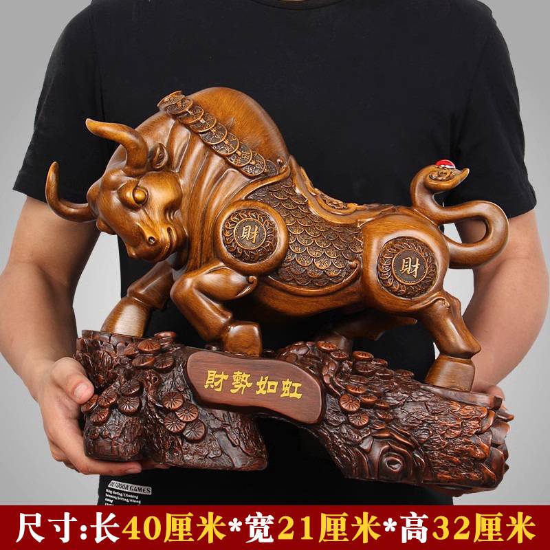 实木雕牛摆件招财家居客厅办公室桌装饰开业商务礼品高档华尔街牛