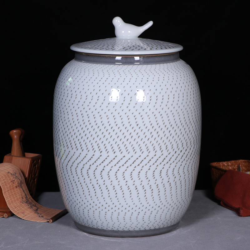 景德镇陶瓷米缸家用密封带盖10斤50斤防潮防虫茶饼罐乔迁复古米罐