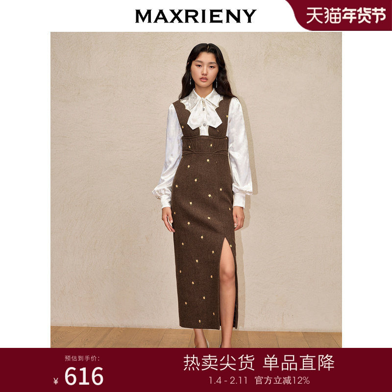 MAXRIENY法式复古v领丝绒连衣裙25秋款x型收腰端庄长裙宴会礼服裙