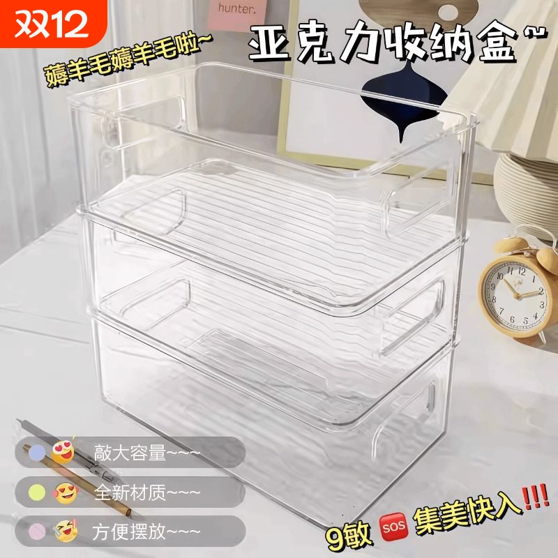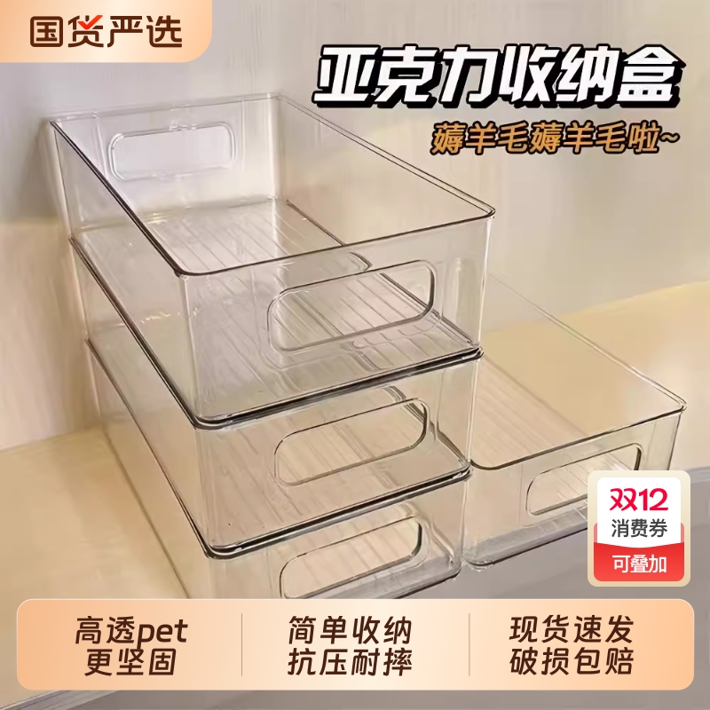 升级透明收纳盒零食整理盒亚克力盒子桌面厨房橱柜杂物抽屉收纳筐