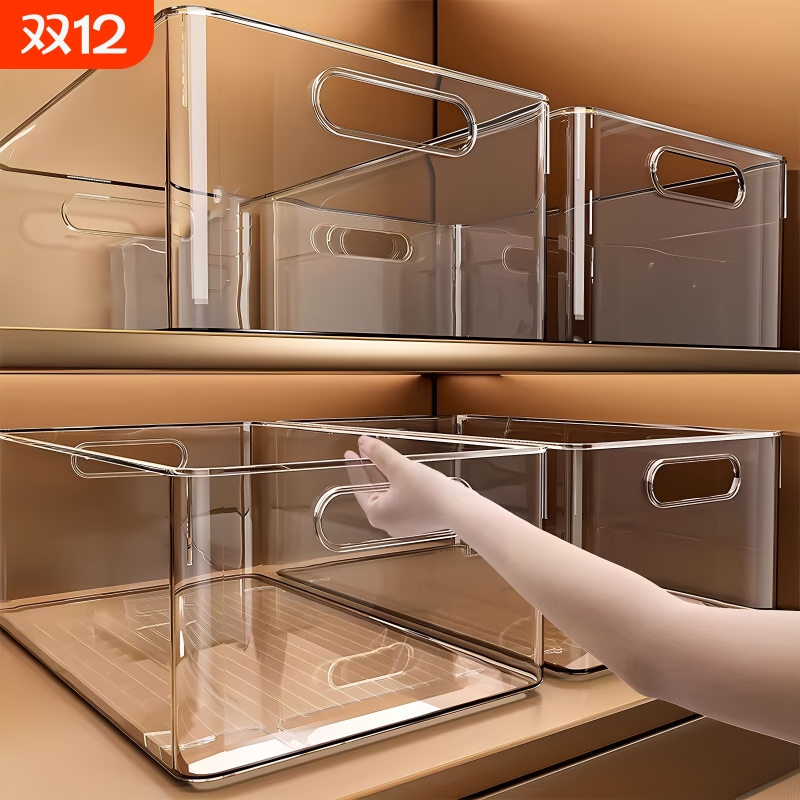 橱柜收纳盒整理杂物零食透明置物筐桌面透明亚克力长方形储物盒子