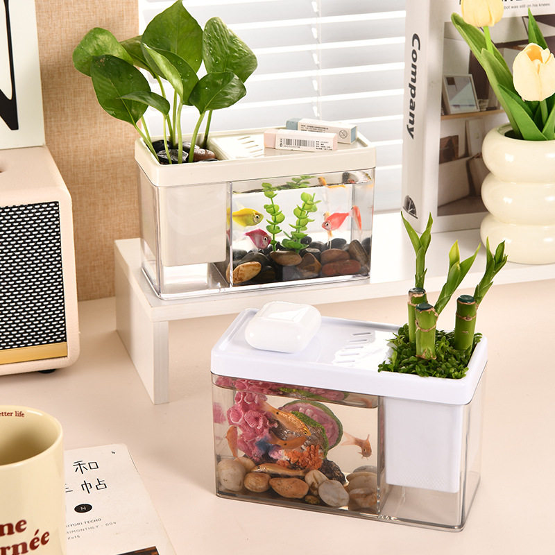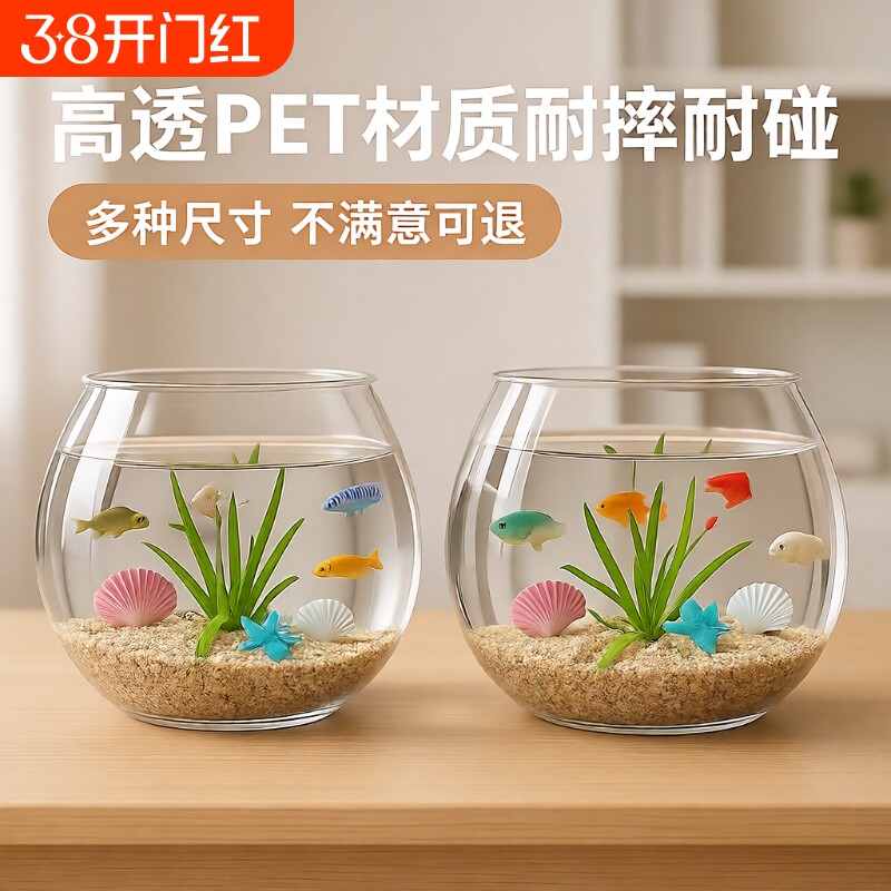 鱼缸客厅新款小金鱼乌龟饲养家用仿玻璃亚克力塑料小型桌面生态缸