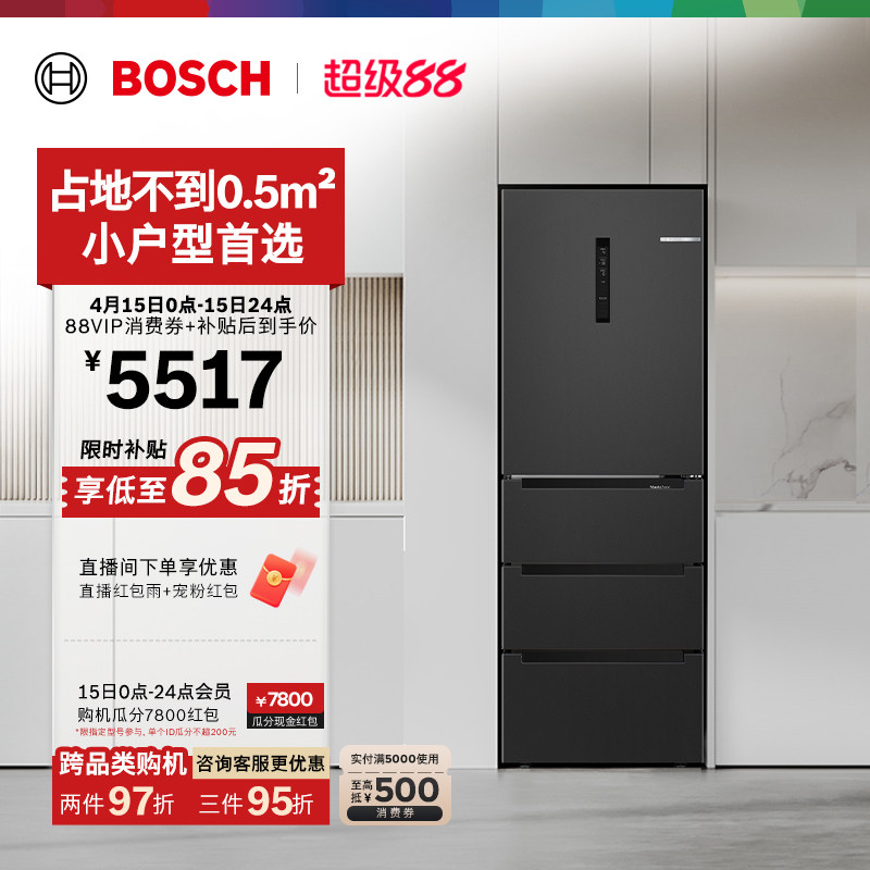 博世406L超薄嵌入式家用小型电冰箱M6法式多门小户型官方正品97TI