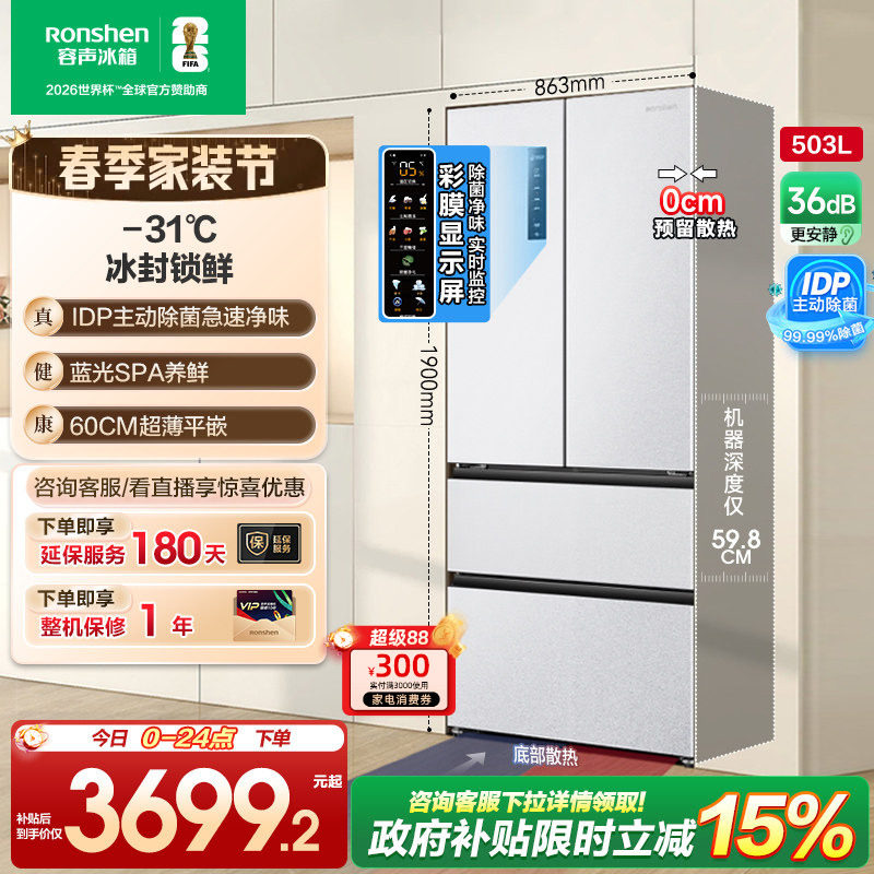 容声503pro IDP净味法式四门多门嵌入式家用白色冰箱以旧换新补贴