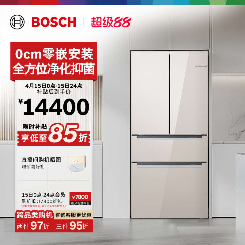 博世504L玻璃零嵌入式双循环冰箱家用拿铁白一级F8s平嵌法式多门