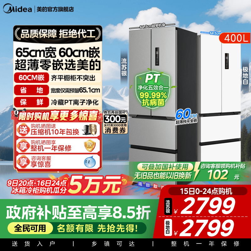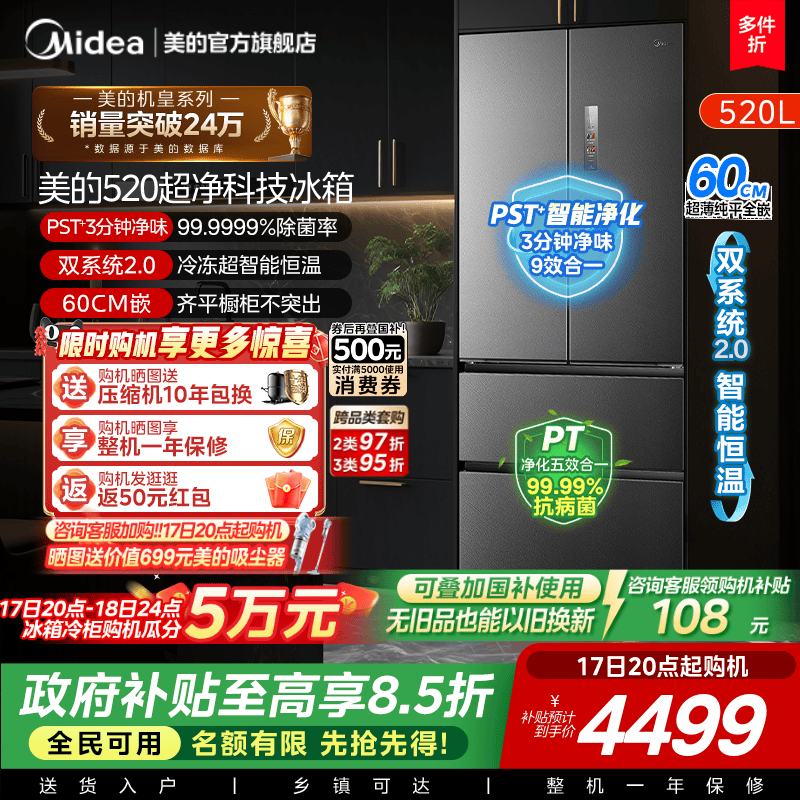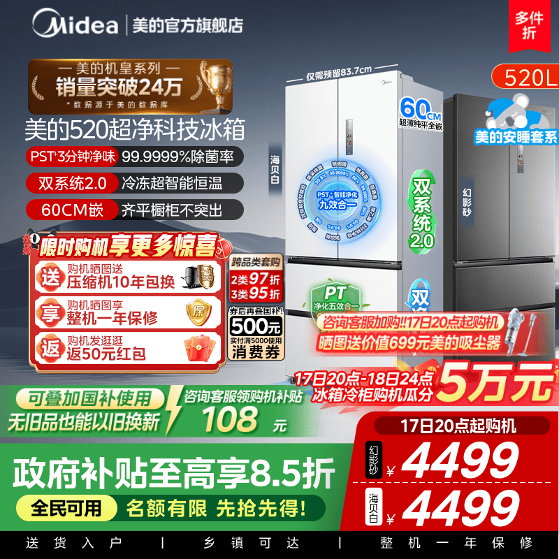 双系统2.0|美的M60冰箱520小机皇超薄零嵌入式家用法式多门四门