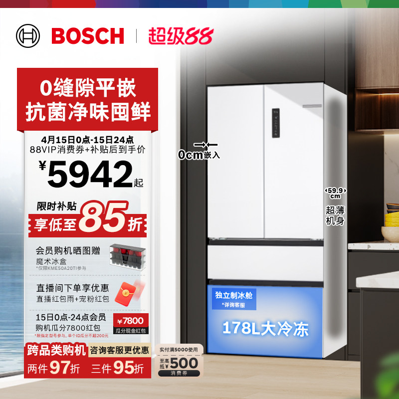 博世新品534L超薄嵌入式冰箱家用一级M8s零嵌拿铁白法式多门20C
