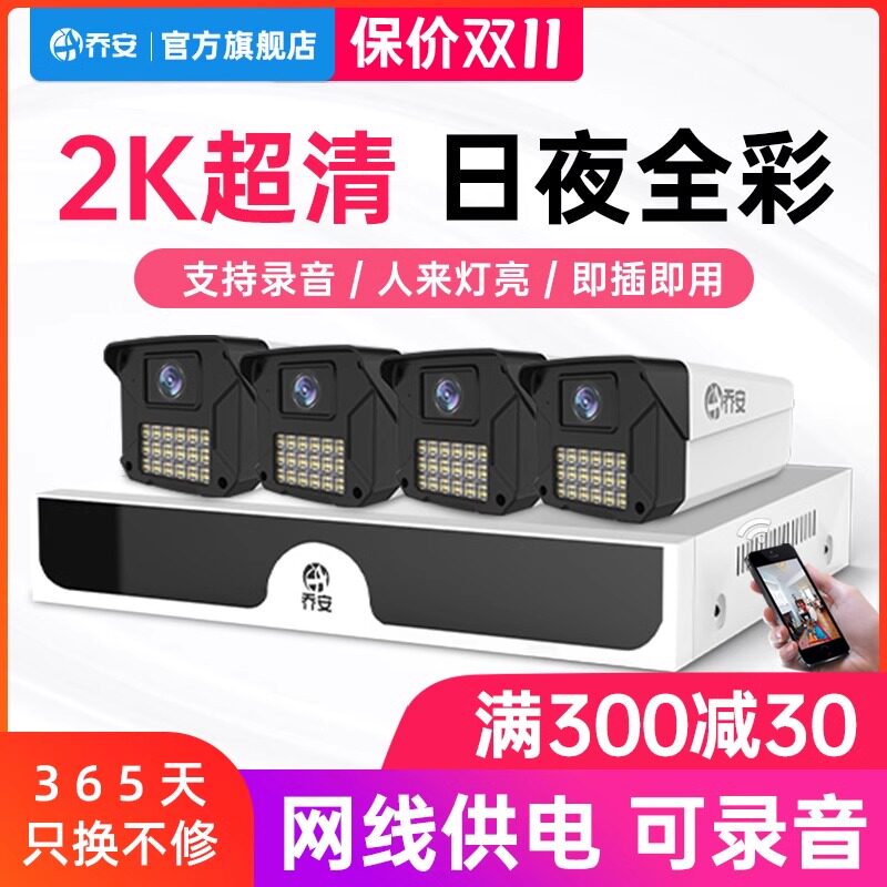 乔安4 8路POE高清摄像头套装夜视监控器全套设备家用室外店铺商用