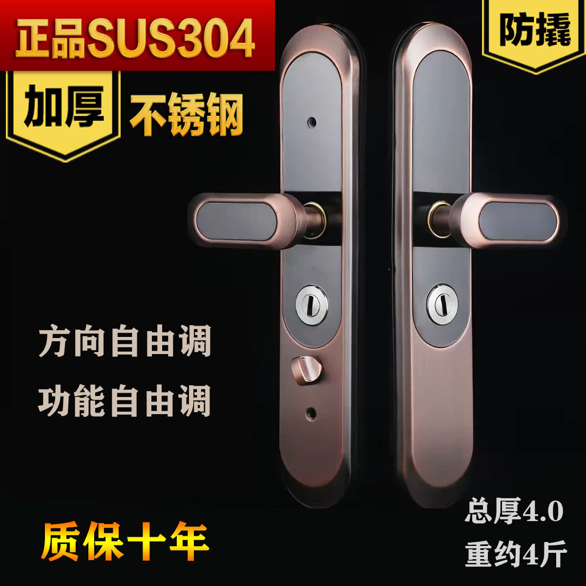 304不锈钢把手防盗门拉手入户大门锁红灰铜家用豪华面板门锁加厚