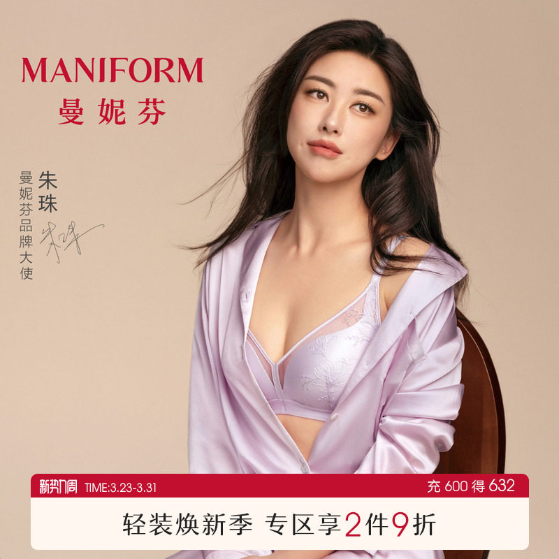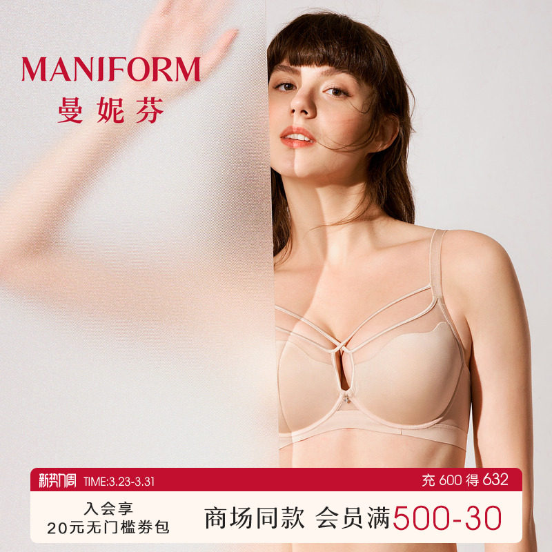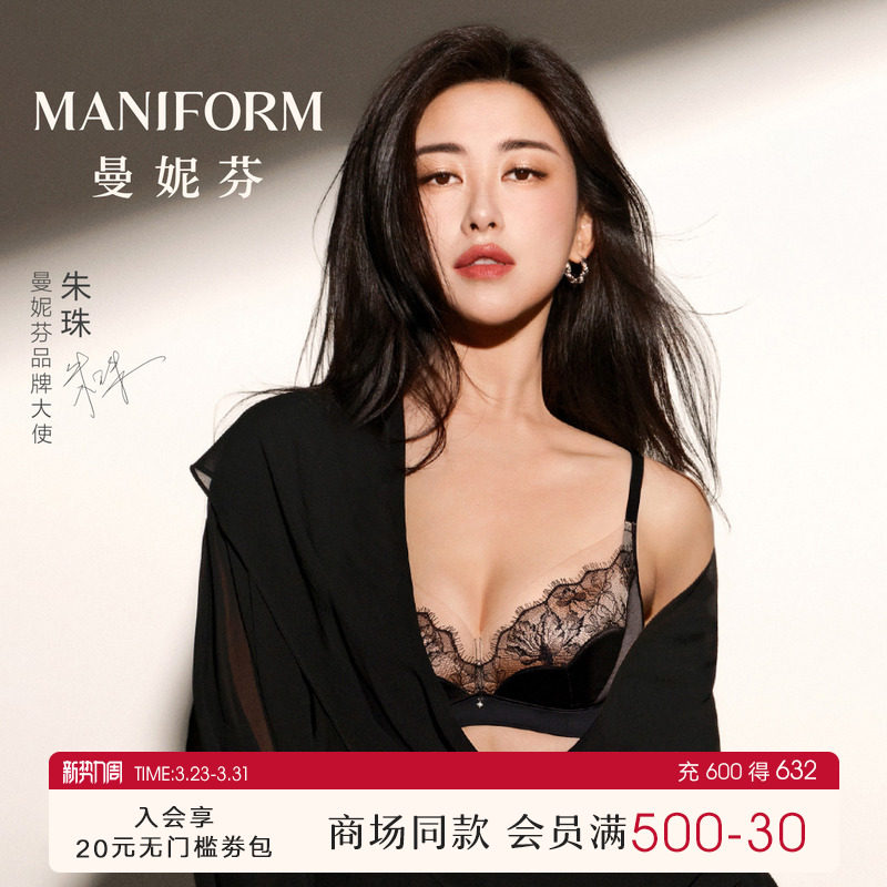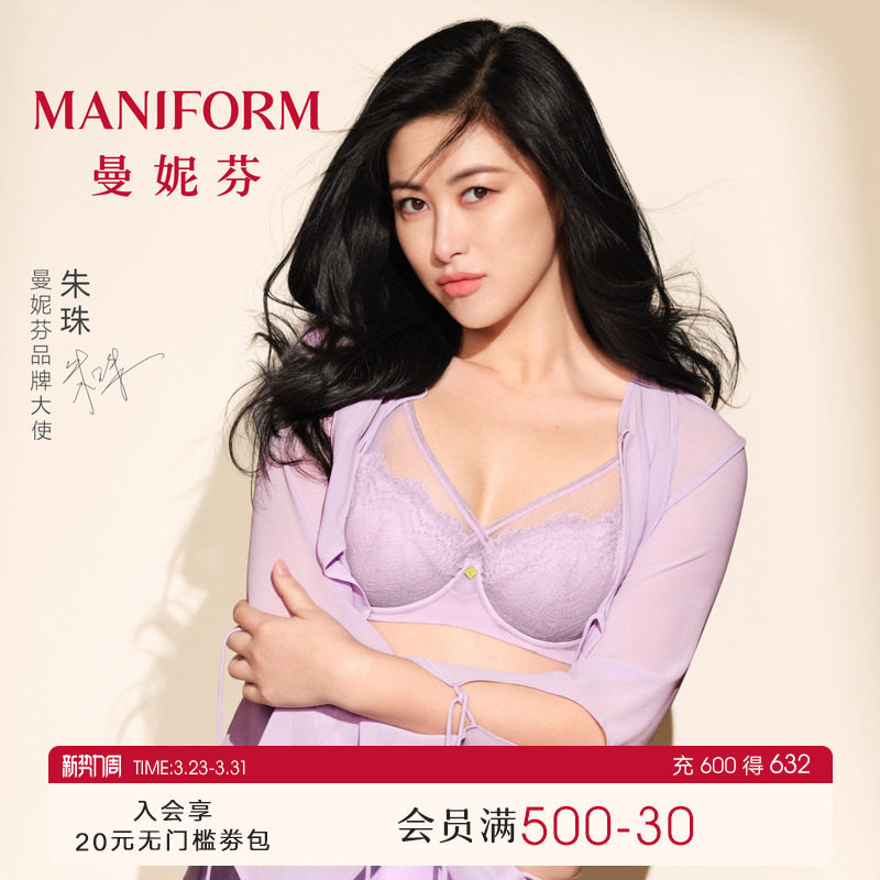 朱珠同款|曼妮芬女士内衣薄款法式性感刺绣蕾丝文胸舒适胸罩聚拢
