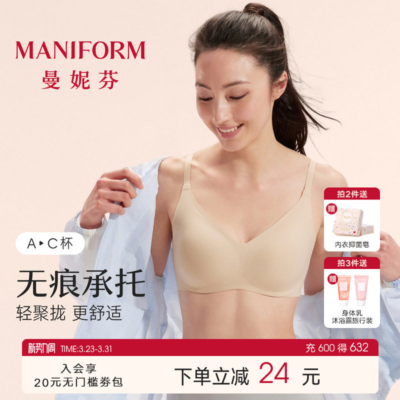 曼妮芬芒果杯智慧无尺码无痕隐形粉底液内衣女无钢圈背心文胸胸罩