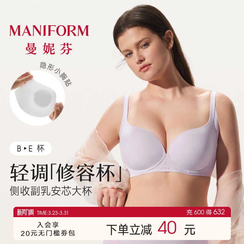 曼妮芬内衣女轻薄款收副乳轻调修容杯大胸显圆文胸无痕软钢圈胸罩
