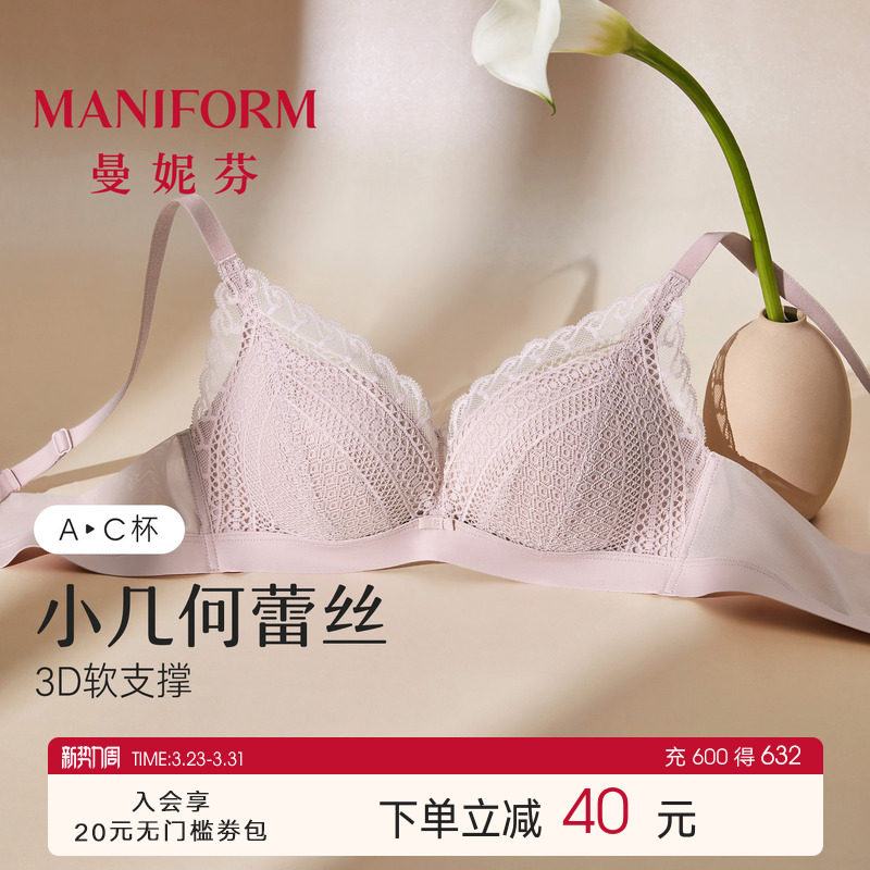 商场同款|曼妮芬性感蕾丝三角杯无钢圈文胸舒适软支撑内衣女胸罩