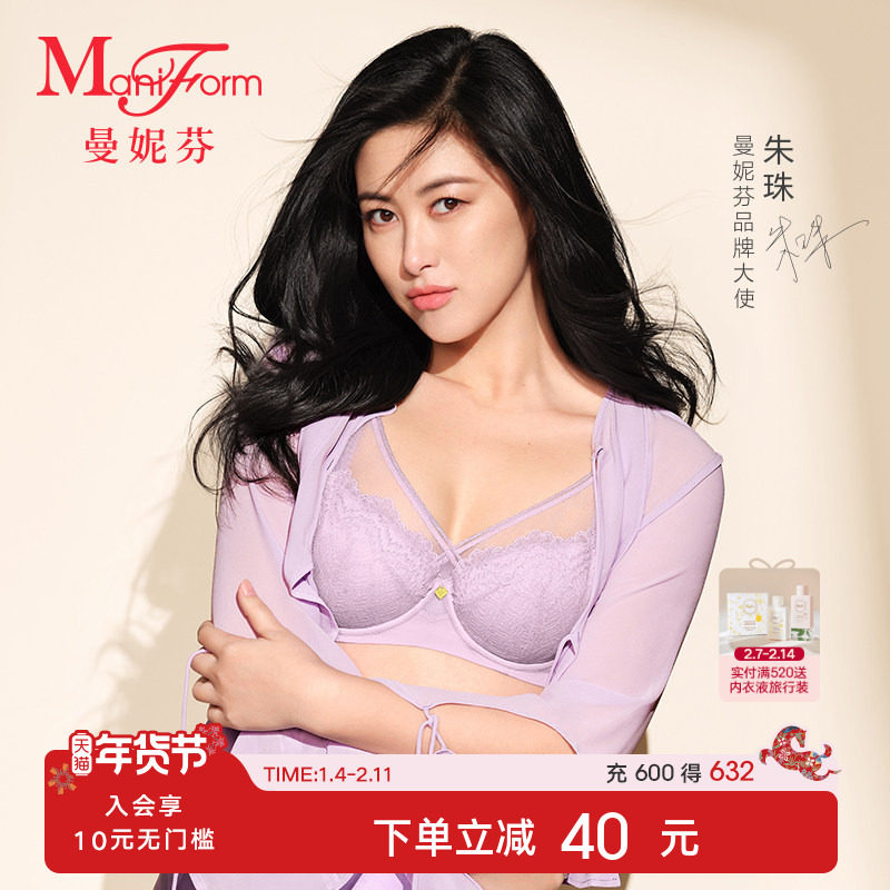 朱珠同款|曼妮芬单层围大胸显小文胸性感法式蕾丝内衣女薄款胸罩