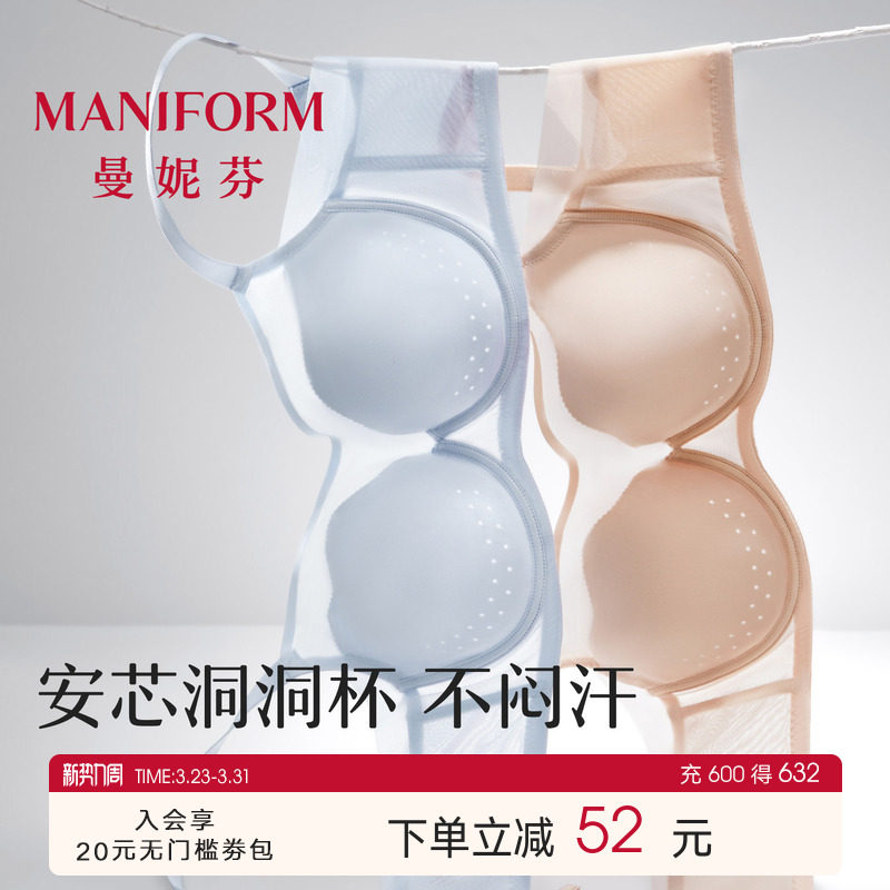 曼妮芬大蜻蜓Bra无痕舒适内衣女薄款文胸大胸显小软钢圈胸罩网眼