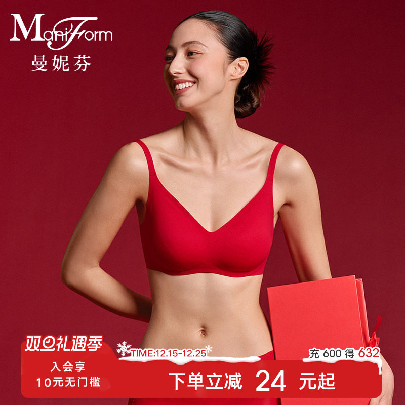 曼妮芬舒适无钢圈文胸小胸聚拢胸罩女士性感蕾丝无痕本命年红内衣