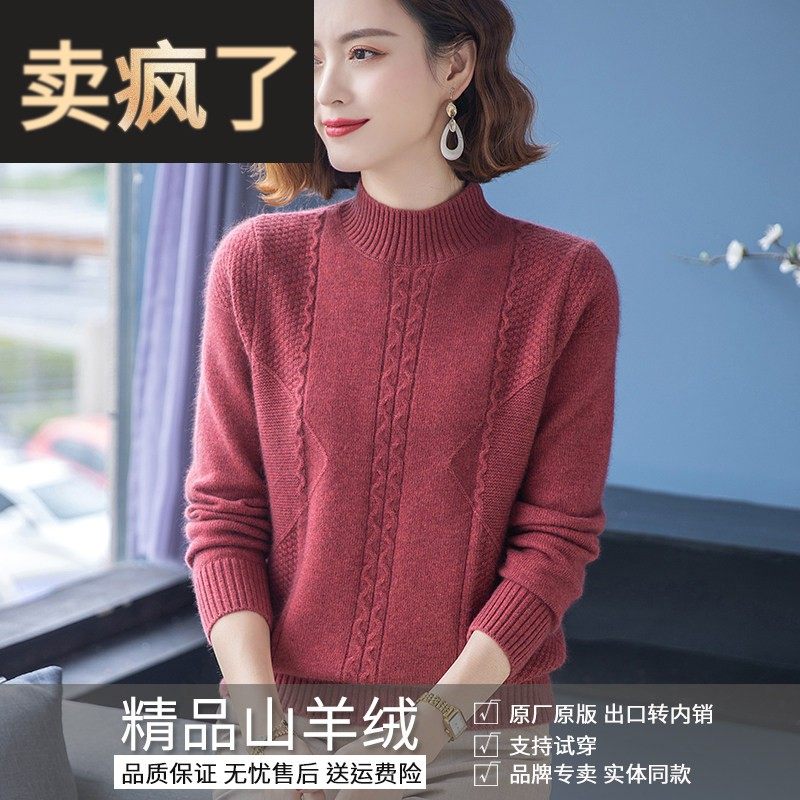 妈妈装100%羊绒衫女中老年女士秋冬半高领套头毛衣洋气针织打底衫