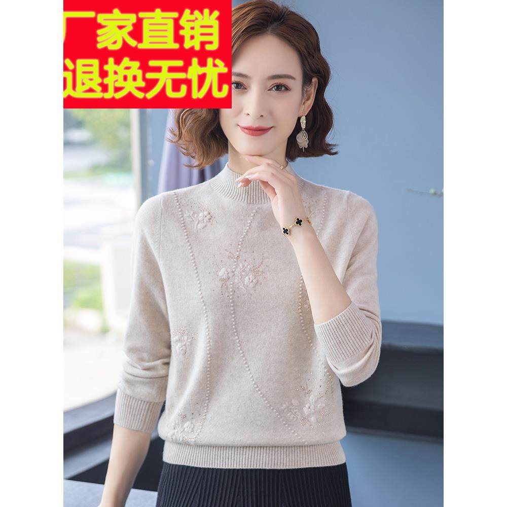 58高端品牌妈妈装秋冬款羊毛衫女中老年羊绒针织打底加厚毛衣烫钻