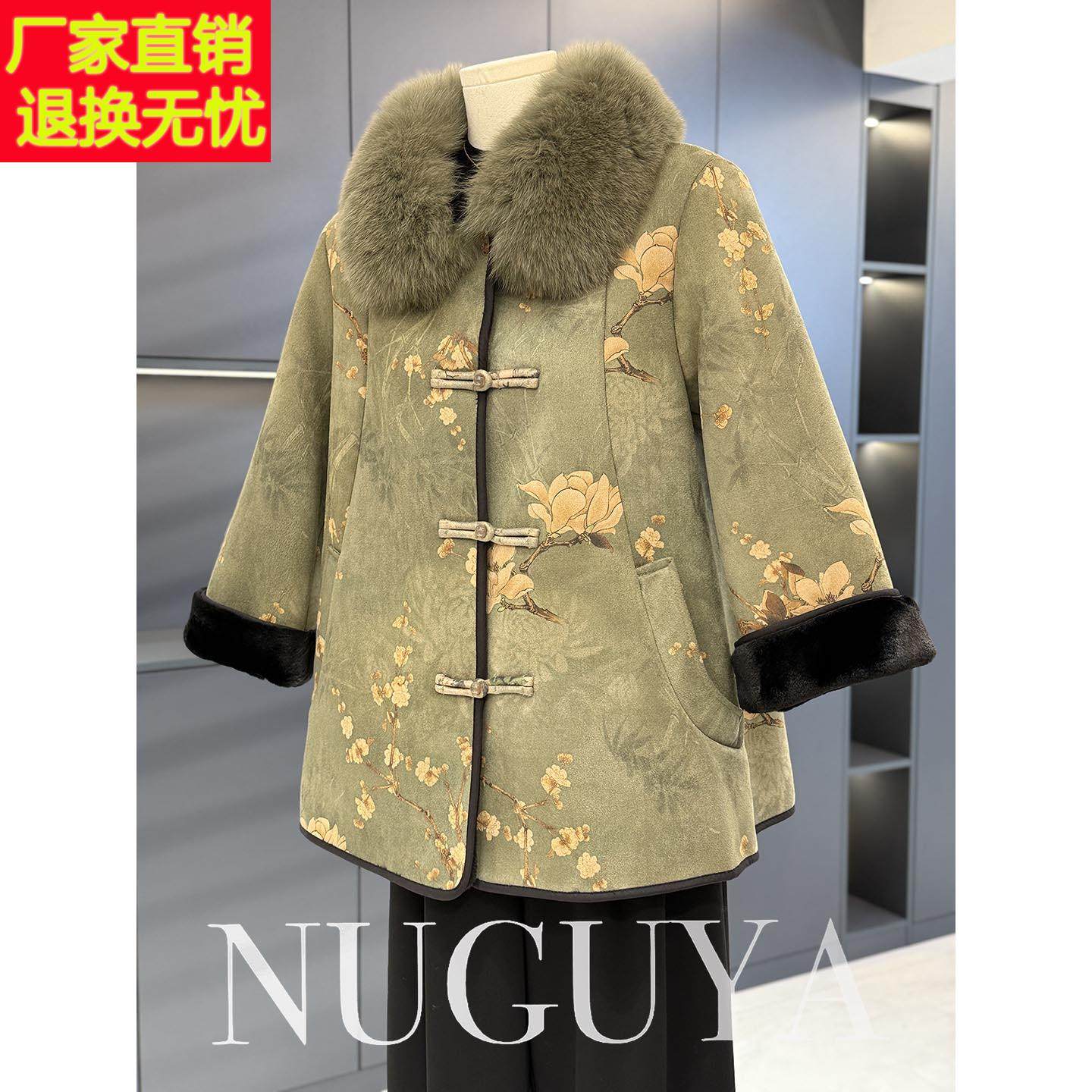 新中式风毛领妈妈装外套女中长款冬装新款中老年盘扣保暖大衣加厚