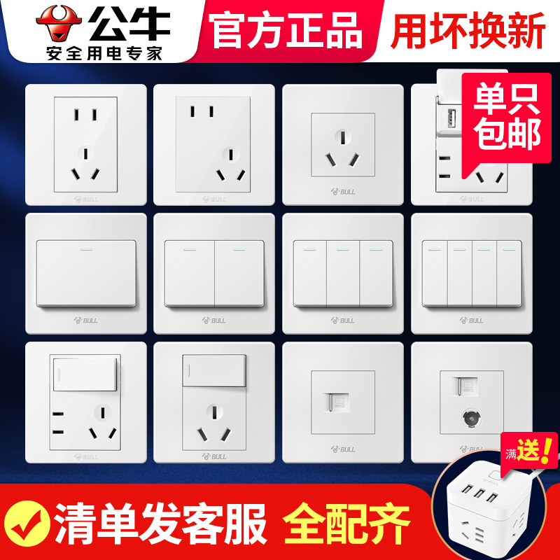 公牛开关插座官方旗舰店正品五孔插座面板公牛插座正品官方旗舰店
