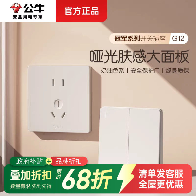 - 公牛开关插座 五孔