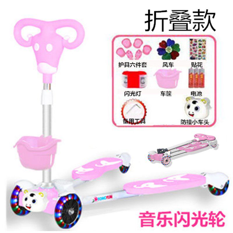 3-14岁儿童滑板车剪刀车小孩双脚蛙式三轮可折叠男女孩宝宝闪光