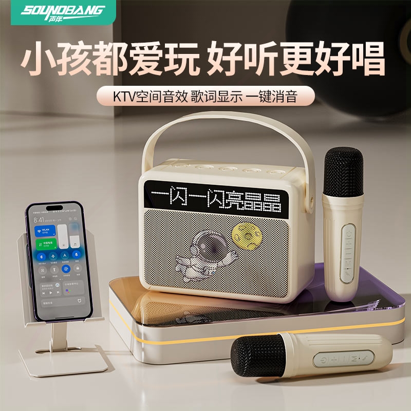 索爱GC200Pro歌词音箱家用k歌麦克风话筒一体家庭ktv礼物蓝牙音响